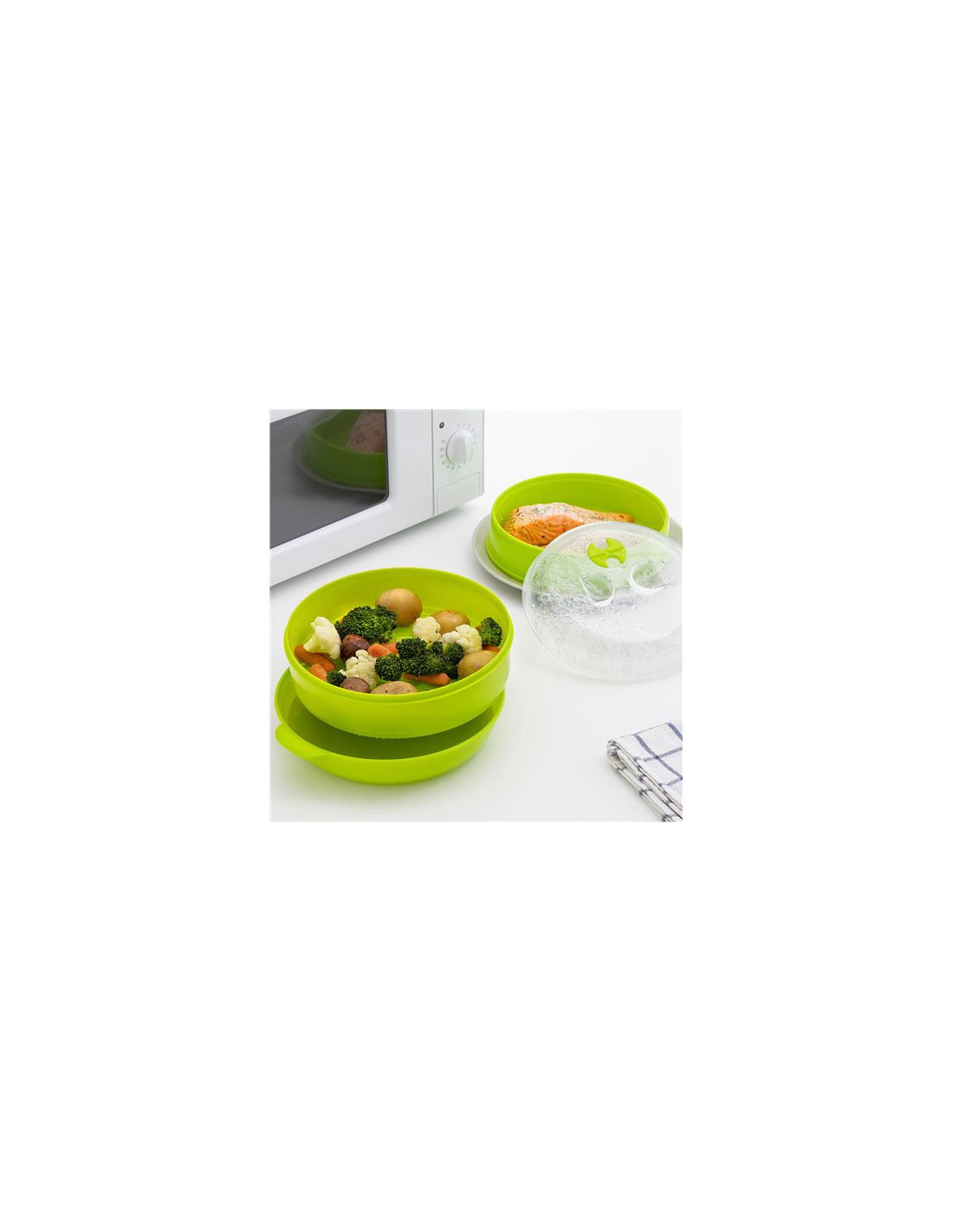 PERFECTA PARA COCINAR AL VAPOR LOS ALIMENTOS EN EL MICROONDAS DE FORMA RÁPIDA Y SENCILLA, CONSERVANDO MÁS NUTRIENTES Y PROPIEDADES. LA MEJOR AYUDA PARA SEGUIR UNA DIETA SANA Y EQUILIBRADA BAJA EN GRASA.