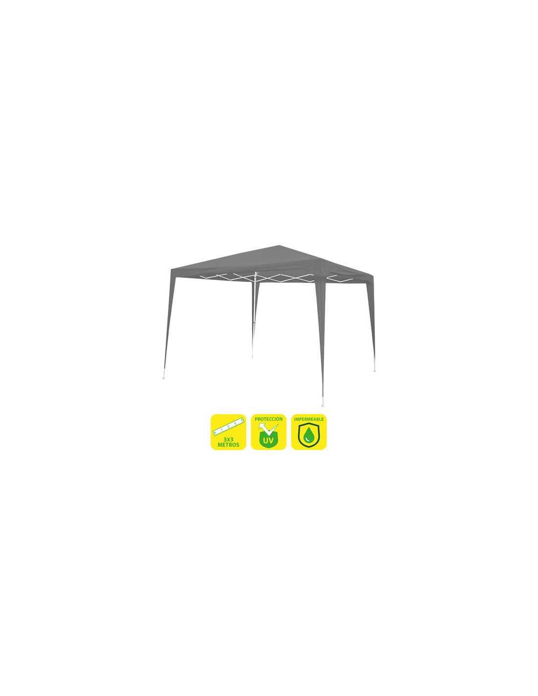 • Con medidas de 3 metros de longitud por 3 metros de anchura y una altura de techo de 2,45m, proporciona un ambiente perfecto disfrutar de reuniones al aire libre con espacio suficiente para 8 personas alrededor de una mesa