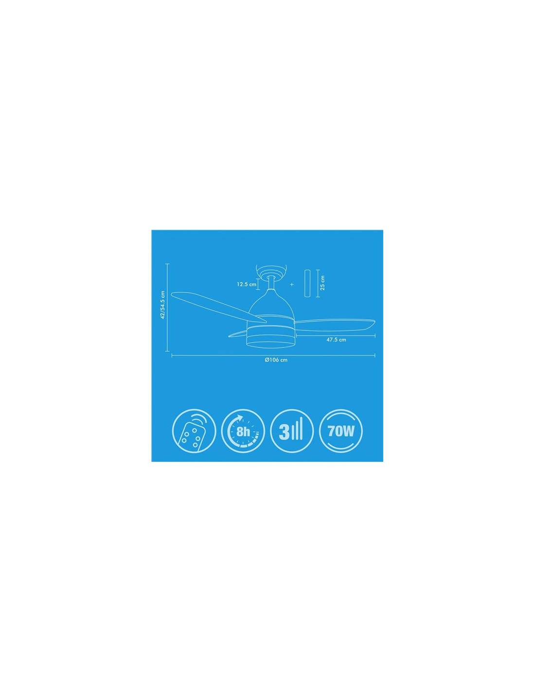 DOBLE ALTURA: Este modelo de ventilador incluye 2 barras de sujeción de 12.5 cm y 25cm, para que puedas colocarlo a la distancia del techo más conveniente.
