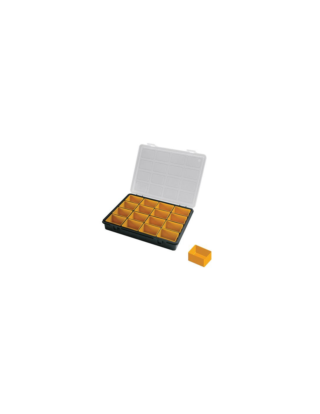 • Este práctico organizador cuenta con 16 cajas internas extraíbles, ideales para mantener en orden tornillos, componentes electrónicos, cuentas, piezas pequeñas o materiales de manualidades. Gracias a su formato compacto (242 x 188 x 37 mm), es fácil de transportar y almacenar.