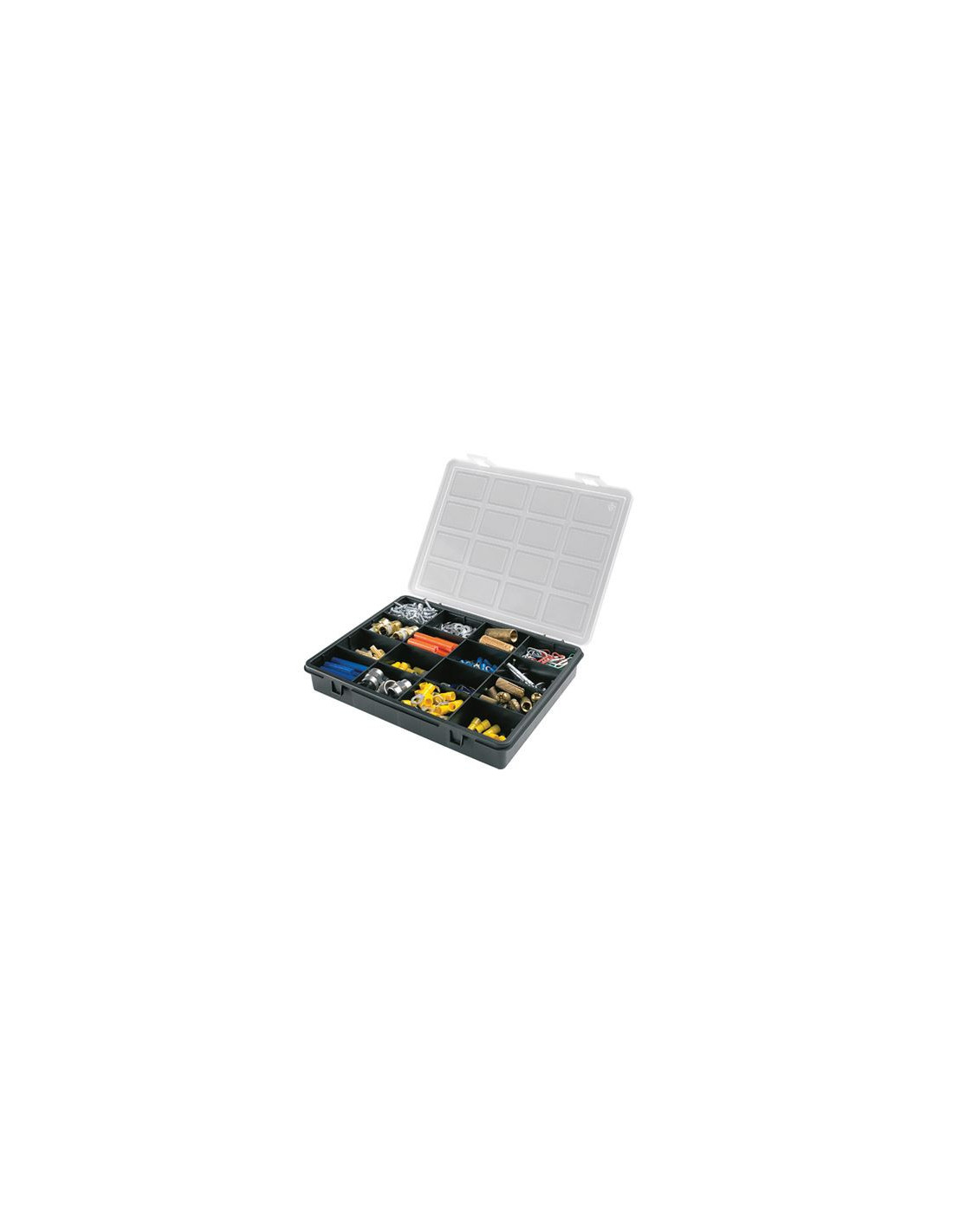 • Este organizador compacto incluye 16 compartimentos fijos, ideales para clasificar tornillos, conectores, piezas electrónicas o pequeños accesorios. Su estructura robusta y tamaño práctico (242 x 188 x 37 mm) lo hacen perfecto para el día a día, ya sea en el taller, la oficina o en casa.