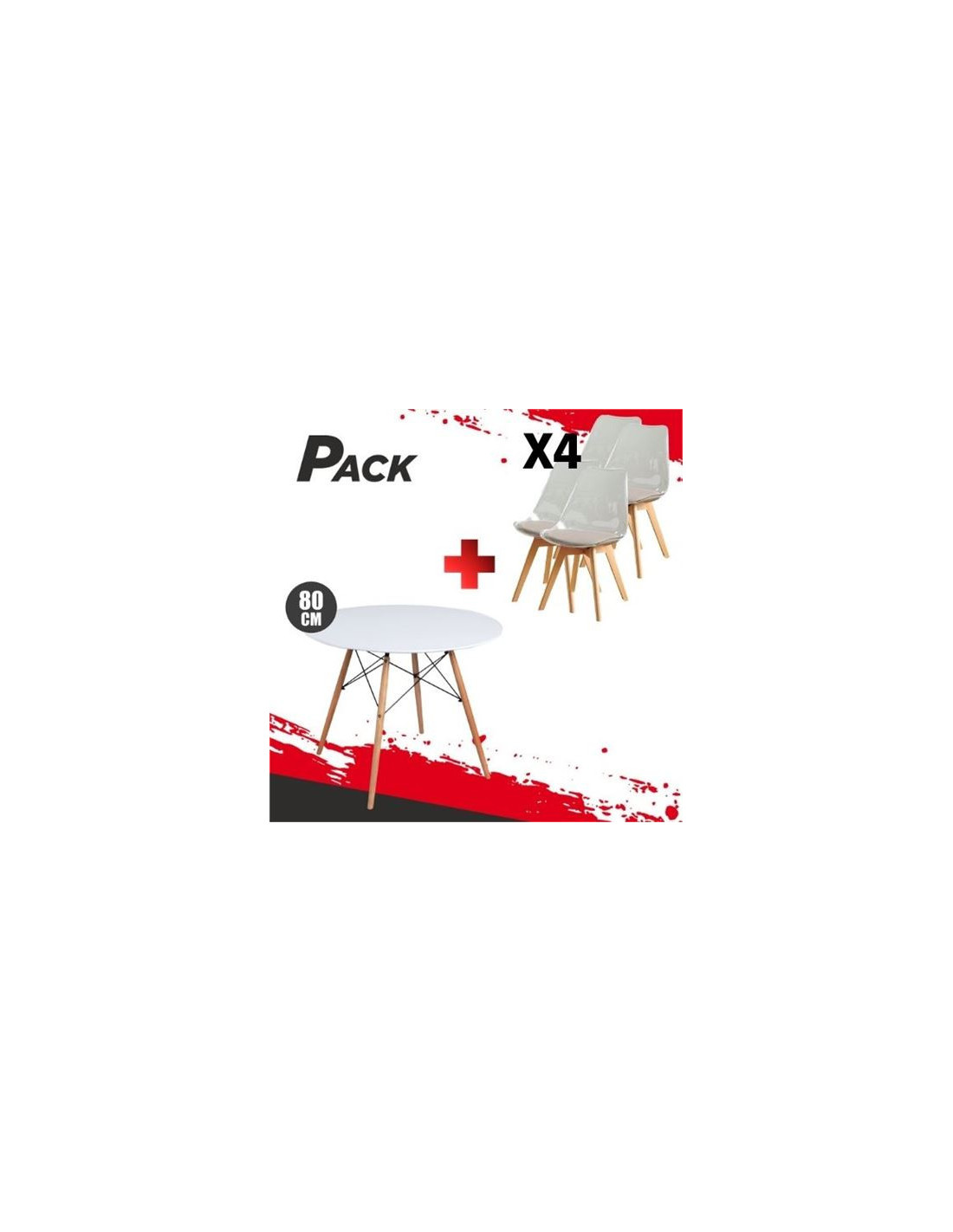 • Pack compuesto por MESA REDONDA DESIGN D500 80CM BLANCA (MV0322) + 4 SILLAS DESIGN D1000 TRANSPARENTES (MV0610)