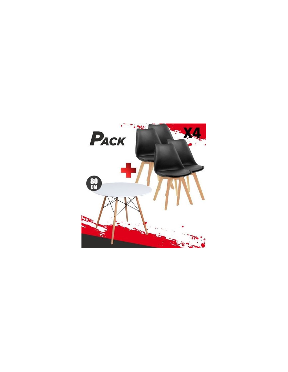 • Pack compuesto por MESA REDONDA DESIGN D500 80CM BLANCA (MV0322) + 4 SILLAS DESIGN D200 NEGRAS (MV0317)