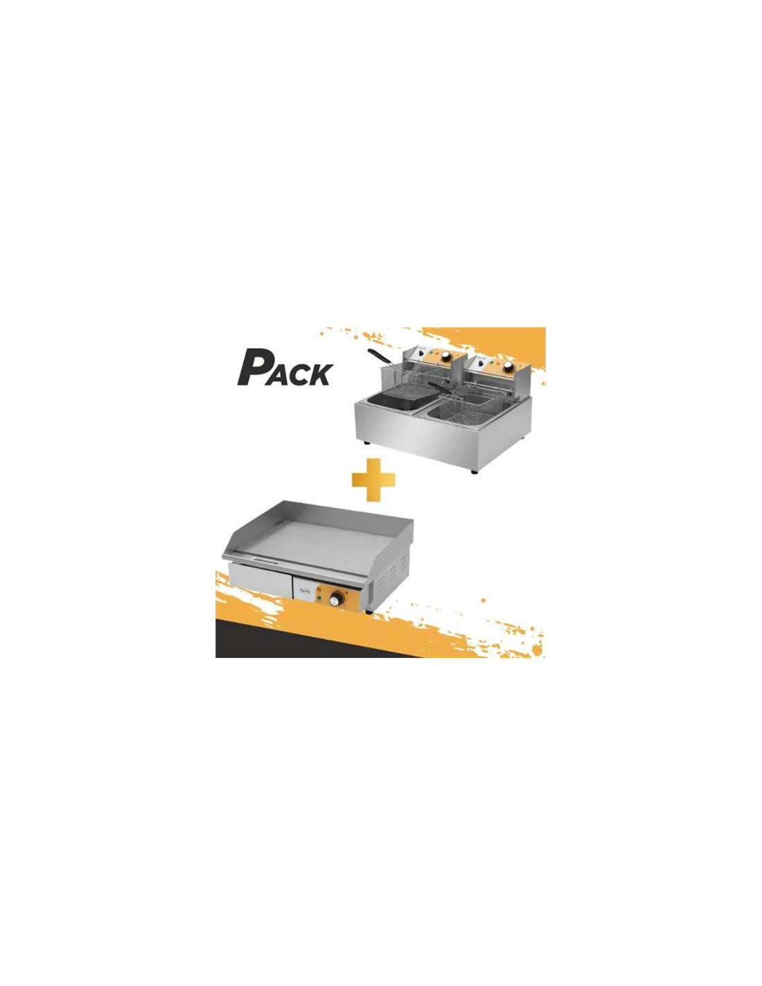 • Pack compuesto por PLANCHA PROFESIONAL SUPERFICIE LISA 3000W (CF0107) + FREIDORA PROFESIONAL DOBLE 9+9L (CF0101)