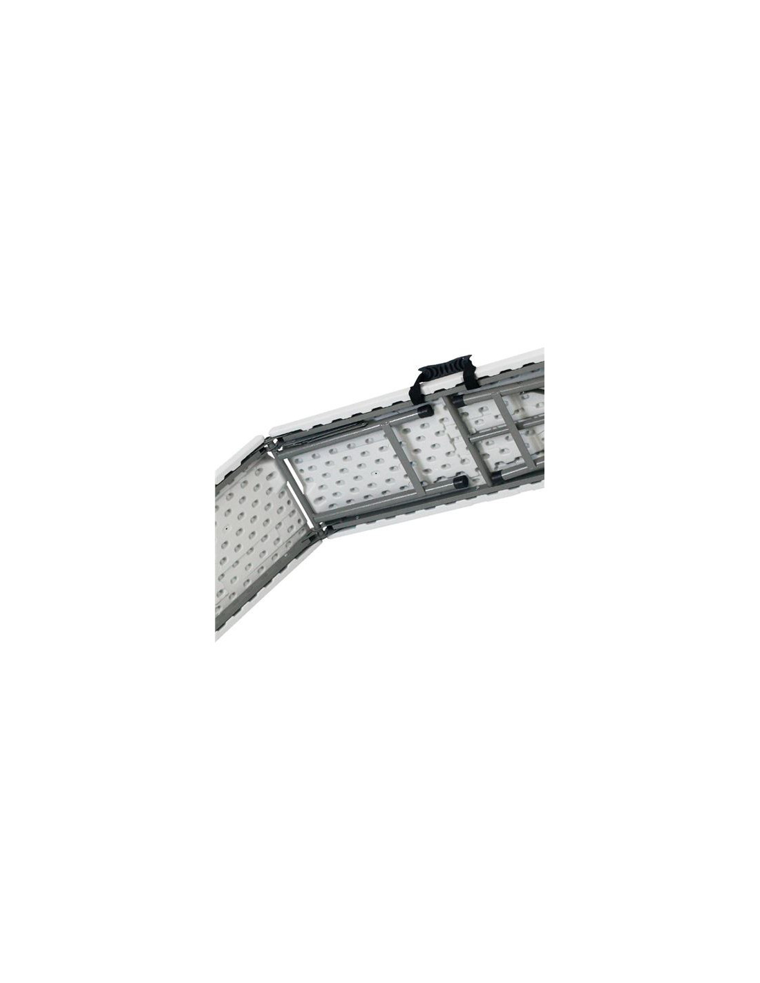• El banco plegable portátil está fabricado en polietileno de color blanco.