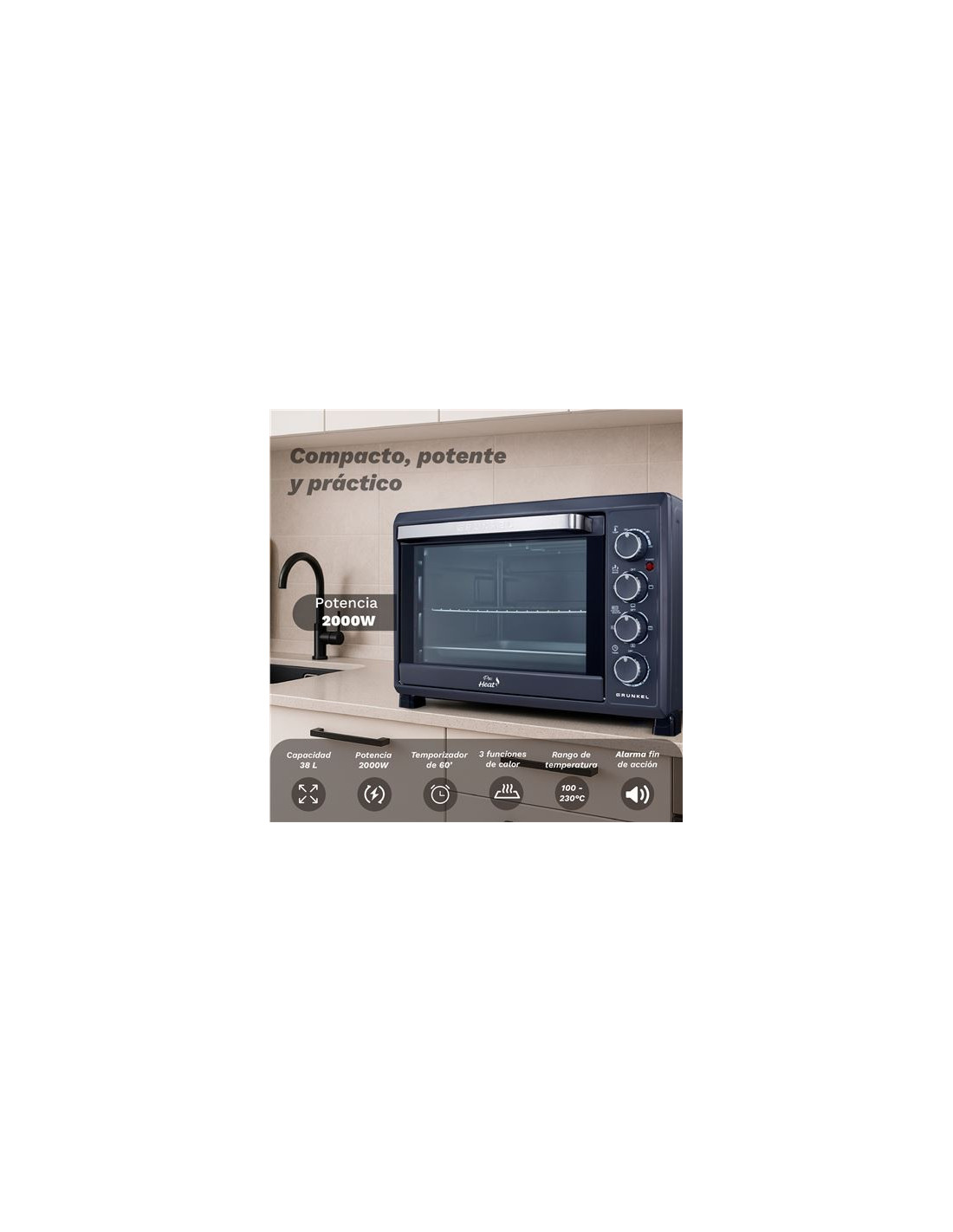 •Color negro•Potencia 2000w•Capacidad 38 litros•Hasta 230º